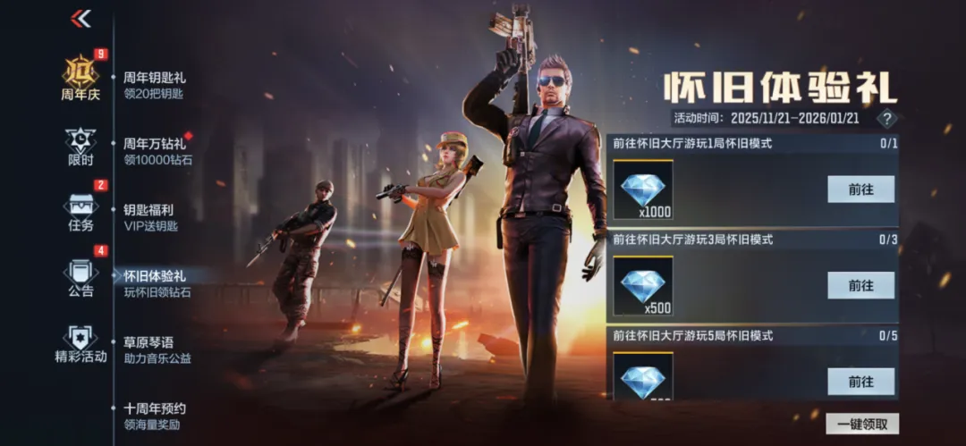 随着本次十周年版本上线,怀旧大厅现已来袭,还记得最初版本的CF手游吗?经典版本上线,熟悉的地图与枪械全员回归!现在体验怀旧模式即可领取钻石*2000+英雄之钥*1!立刻前往怀旧大厅,解锁专属青春记忆吧~