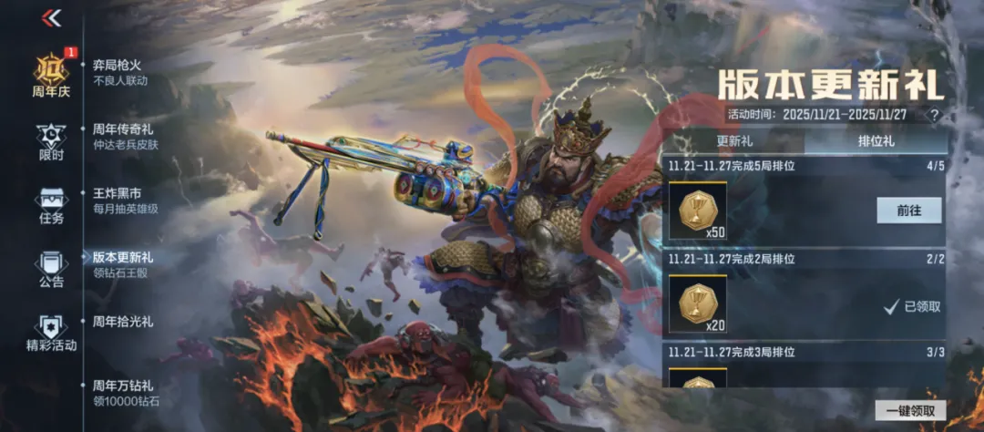 累计参与5局排位赛一共可以获得排位币x100,只要参与排位赛就可以获得,缺少排位币的玩家一定记得来领取这波福利!