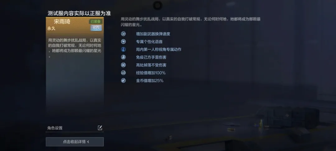 宋雨琦的角色技能,也显得与众不同。她可以增加副武器换弹速度,让狙击手在突破过程中灵活使用副武器,减少己方副武器换弹中被击杀的容错率。同时还有局内第一人称视角的专属动作,更加突显这个角色的个性化!