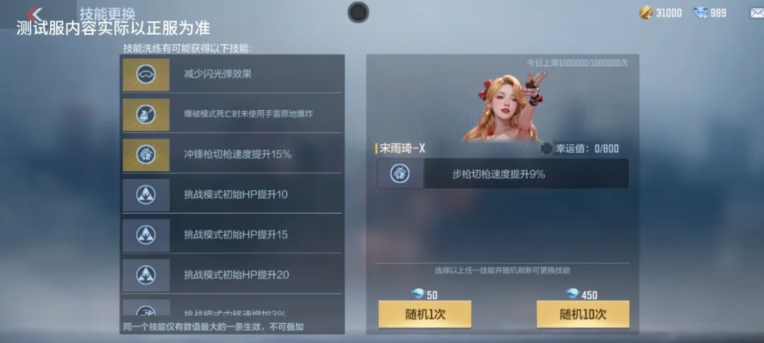 宋雨琦还可以通过觉醒石,觉醒为宋雨琦-X,觉醒后拥有对角色技能进行洗练的能力。洗练出减少闪光弹效果,让宋雨琦-X成为防闪、防摔、防雷的三防角色。又或者可以洗练出爆破模式死亡时未使用手雷原地爆炸,敌人淘汰你,也得吃雷,残局收割,补伤害,威慑对手效果拉满!实用性很不错!还可以洗练出冲锋枪、步枪以及霰弹枪的切枪速度提升,可以依据个人枪械喜好,洗练出适配自己的技能!