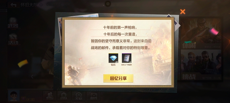 最后在怀旧大厅下方还有彩蛋哦~,依次点开好友、战队、天赋、邮件,不仅能够看到曾经的一点一滴,而且还有一份不菲的惊喜送给每一位CFer。希望小伙伴们能将这份挚爱坚持下去,带领CFM走向更高的辉煌。