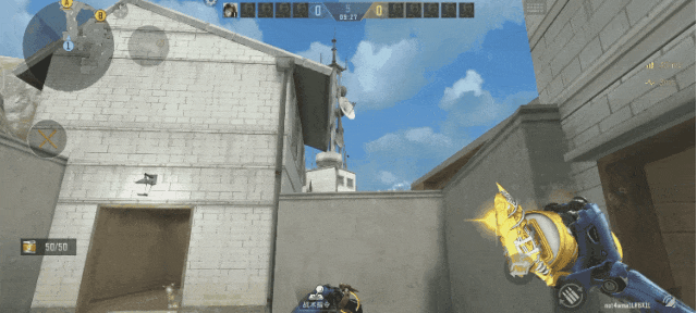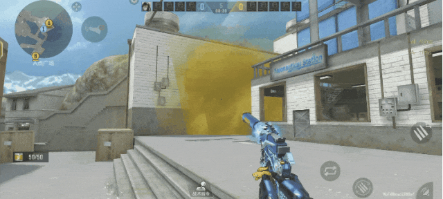 回防B点时敌人通常站在府邸进行架枪,而这颗烟可以帮助我们隔断府邸的枪线,来到CT的这个门口,将准星瞄准这根立柱底部红色部分的这个面投出即可,这颗烟将会阻挡府邸的敌人视野,这时敌人只能被迫上到阳台架点,我们直接对阳台进行穿点即可。