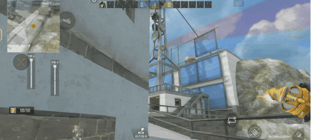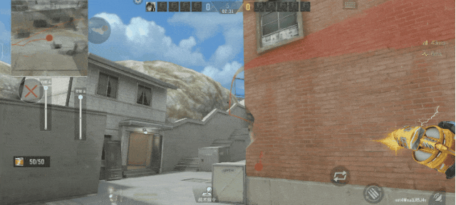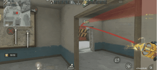 我们在进攻A大时如果已经阅读到了敌人喜欢站在白房进行防守,那么来到这个位置,将准星的瞄点对准屋檐向上移动,当抛物线的轨迹产生折痕时就可以投出了,同时可以参考旁边的投掷物画中画,这颗雷使得敌人不论是闪身看还是往回走都会受到伤害。