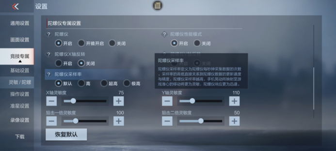 本次更新新增陀螺仪采样功能,默认为基础选项,各位CFer可根据自身的设备性能,来选择高/超高/极高其中之一。