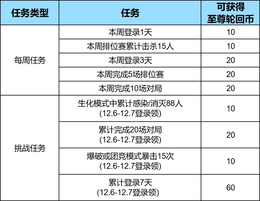 活动期间,可通过每周任务和挑战任务可获取“至尊轮回币”。