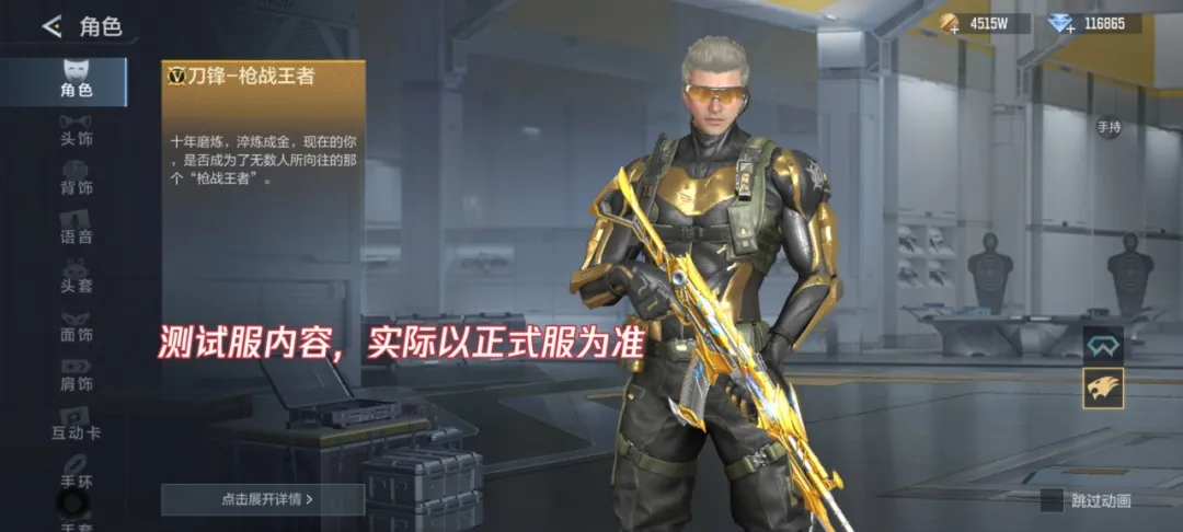 三防属性角色刀锋-枪战王者,局内第一人称视角专属动作、专属个性化语音,专属仓库炫酷演绎动画。爆破模式开局还将获得小幅加速。除能免疫己方手雷伤害以及高处跌落伤害,最最重要的是刀锋-枪战王者还自带“防闪”技能。