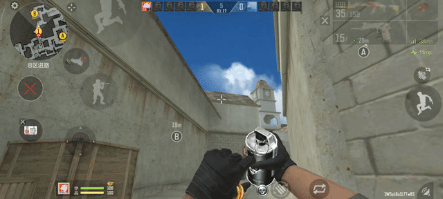 也可以选择中路继续往前走,到达下水道区域然后往杠A或者杠B方向封一颗烟,之后继续往前走并选择投掷一颗闪光弹,然后选择杠A或杠B进行突破。