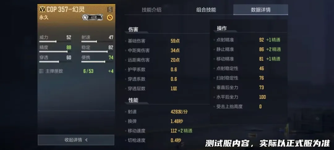 所有的英雄级COP 357武器(不含王者武器、掌中宝系列武器)的基础数据是一样的,COP 357-幻灵也不例外,这便不再过多解读。