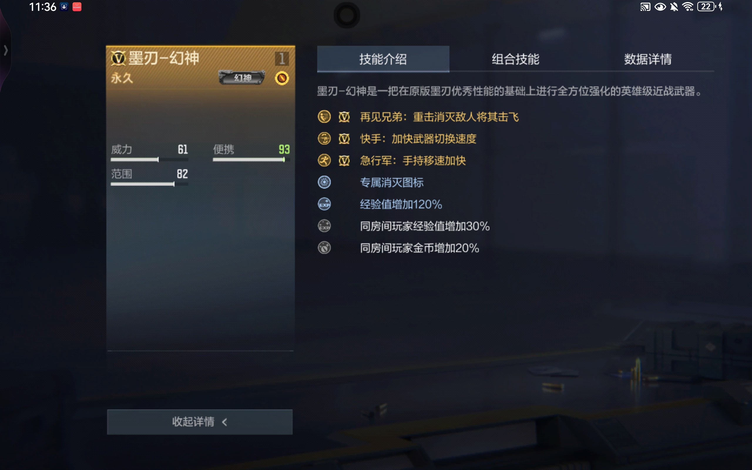 墨刃-幻神的武器技能最爽的是它的专属技能“再见兄弟”,重击消灭敌人时会直接将其击飞,视觉打击感直接拉满,就连击杀播报都自带气场。快手和急行军技能都是英雄级近战标配。同时还可搭配M200-幻神、MK23-幻神激活套装属性,增加2发主弹匣子弹数。