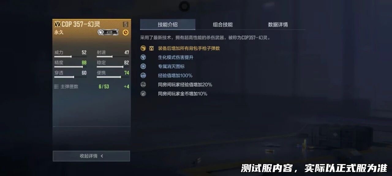 COP 357-幻灵在紫色扭蛋中产出,作为一款全新的英雄级COP 357,数据与其他英雄级COP 357一致(除王者级别),技能上拥有生化模式伤害提升。