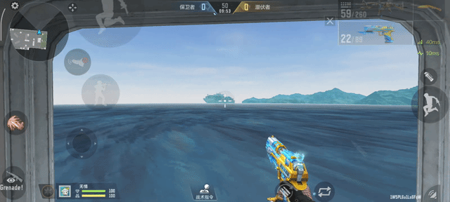 王者之轮-冰霜奇迹的枪口冰晶纹路如浪潮翻涌,给人带来一股凛冽的冰霜气息。而鎏金与冰晶蓝勾勒出硬朗的枪身轮廓与纹路细节。其握把处的设计更像是鎏金的蜂窝状设计,并且点缀着少许冰晶蓝。