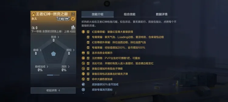 王者幻神这把枪主要拥有命中敌人大腿提升伤害的属性,玩家开镜后敌人与准星重合时会激活无处可逃技能:狙击边框变红,与王者之力统称PVP轻狙一把手。