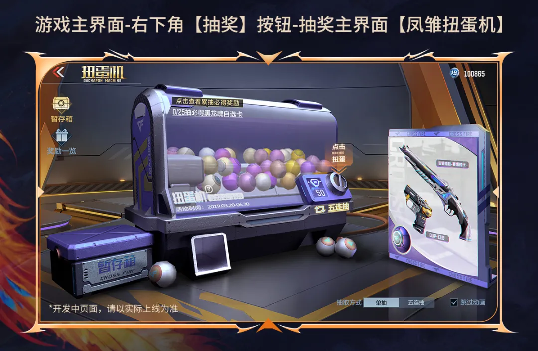 各位CFer在购入扭蛋币后,可前往游戏主界面-右下角【抽奖】按钮-抽奖主界面进入【凤雏扭蛋机】开启抽奖。