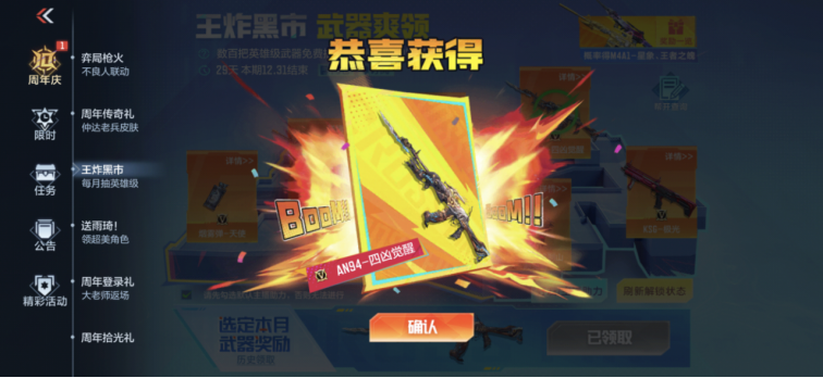 王炸黑市活动自2025年9月上线以来就受到了玩家们的广泛关注,每月6选1固定能获得一款英雄级武器的活动机制对玩家们来说非常友好,尤其是在2025年12月的十周年版本中可直接全领6把英雄级武器,更是将王炸黑市活动推向了高潮。