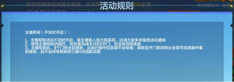 本次活动最重要的核心就在于玩家能够通过邀请好友助力,拥有一次重新刷新奖励的机会,在遇到自己不想要或者是已拥有的武器时,重置奖励后可以再次开启6扇门,重新选择武器奖励。