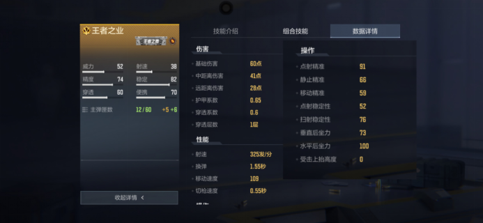 在数据上,其射速达到325发/分,在王者系列副武器中十分出色。