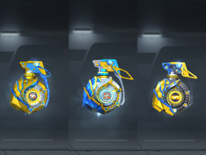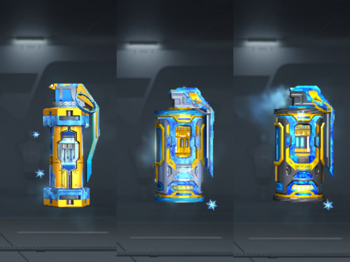 26-S1赏金令返场王者之翼/圣/兽/势/雷霆王者/竞投掷物冰霜奇迹皮肤,你可以单个兑换手雷、闪光弹以及烟雾弹的冰霜奇迹皮肤,也可以直接兑换投掷物冰霜奇迹礼包,使用CFM币兑换还有折扣哦。