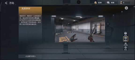 无双手环延续了奉先无双系列的机甲风格设计,由金属环与能量核心组成,中央有绿色能量晶体持续闪烁光芒,环体两侧装饰有赛博翎羽,静止状态下会轻微飘动,增添灵动效果。