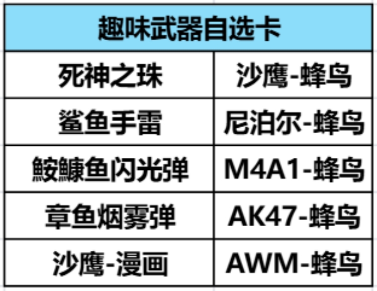 造型独特、充满创意的趣味武器自选卡你确定不来一张吗?所有趣味武器均为限定款,错过活动难以获取,非常适合收藏党。