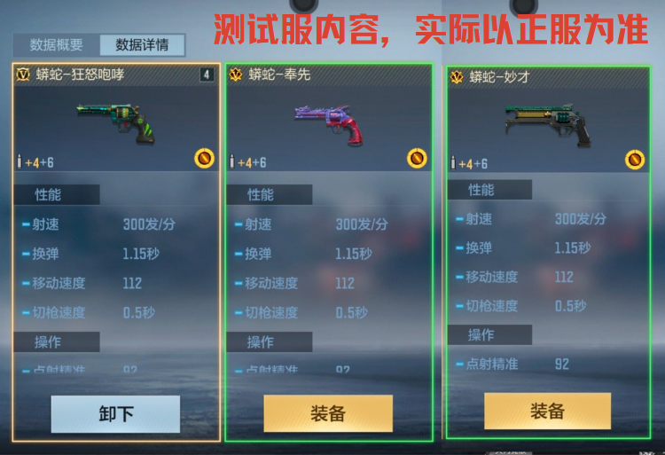 三款武器的性能数据也完全一致,可见游戏里的蟒蛇系列都比较优秀。