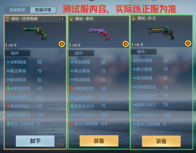 在操作性能上,蟒蛇-狂怒咆哮的点射稳定性和受击上抬高度优于蟒蛇-奉先,但垂直后坐力表现不如后者;其操作数据与蟒蛇-妙才一致,没想到蟒蛇-狂怒咆哮如此给力。