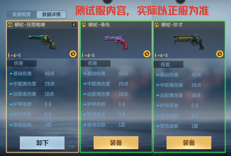 这里对比了同系列的两款武器,三款武器的伤害数据一致,可见蟒蛇-狂怒咆哮也是一把不错的副武器。