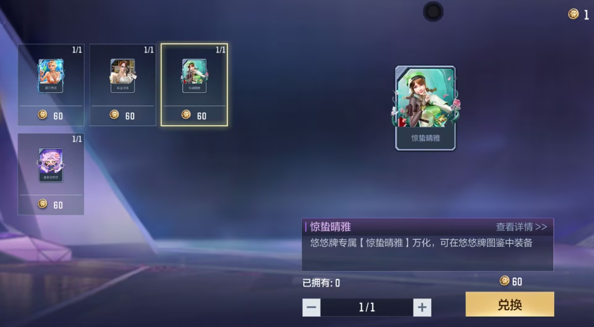 除了以上奖励之外,在通行证中,我们还可以获得悠悠牌兑换币。获得的悠悠牌兑换币可以在兑换商城中兑换不同的卡牌万化,包括【夏日灵狐】、【职场灵狐】、【惊蛰晴雅】以及【像素云悠悠】。每一个卡牌万化的兑换价格都是60枚兑换币。本赛季最多一共可以获得70枚悠悠牌兑换币,也就是说最多只能兑换一个卡牌万化,各位玩家记得谨慎选择。另外,还要提醒一下,【圣诞灵狐】,【夏日灵狐】以及【职场灵狐】全部为【灵狐者】的卡牌万化,在战斗中一次只能装备一款。
