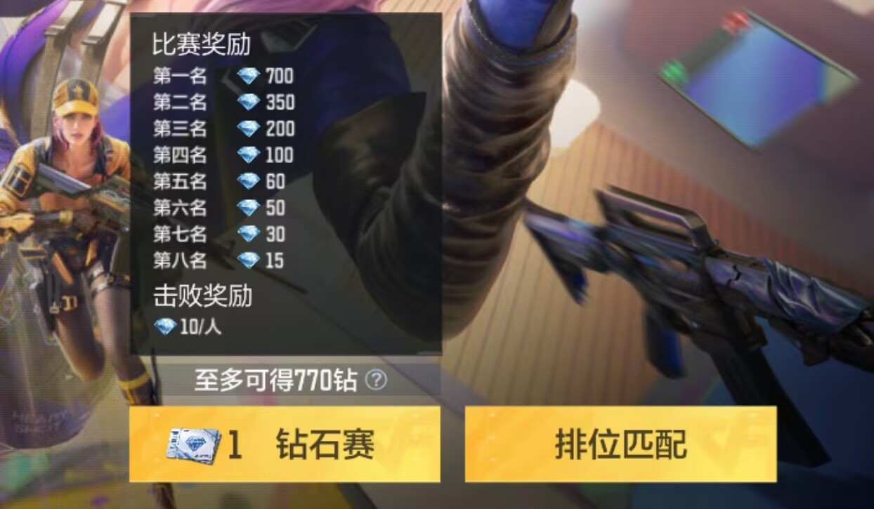 在通行证达到10、20、30、40、50可以各获得一张悠悠牌钻石赛门票。悠悠牌钻石门票可以用来参与钻石赛。在钻石赛中最终的名次越高,获得的钻石奖励也越多,最多可以获得770钻石。