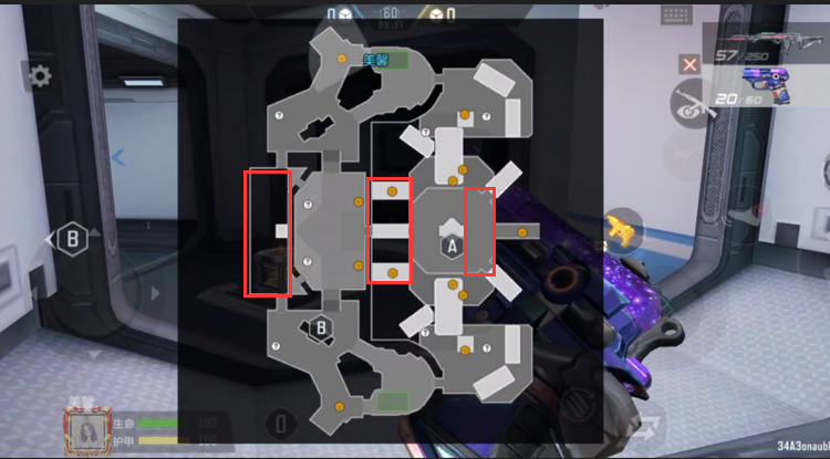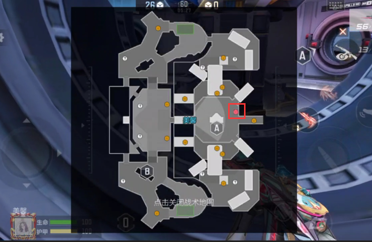 第三个高价值笨笨刷新点则是位于地图中间连接位置,该点位位于A点的左侧,从地图中可以清晰的看到,这个点位大家经常路过。穿过传送门后就来到外太空了,这里比较空旷,又是双方阵营经常会蹲守的点位,大家需要注意周围是否有蹲守的对手,一定要随时观察四周。