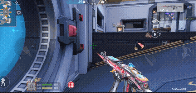 当然,该点位离B点也很近,只需要穿过蓝色的传送门即可。不过,B点位是双方交火比较集中的区域,周围很可能有对手蹲守。因此,如果有召唤笨笨技能,建议优先使用;如果没有,则在进入B点时需注意观察四周,可以使用球形护盾技能以减少受到的攻击伤害。