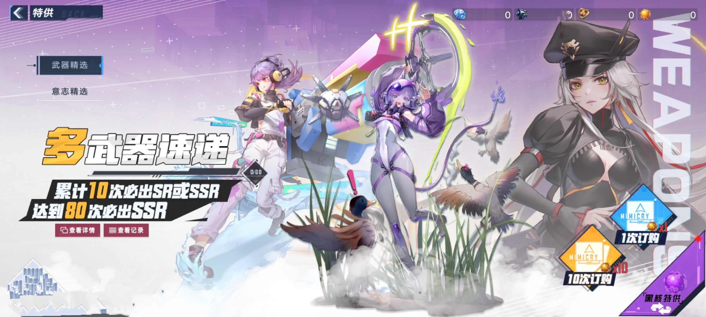 卡池的保底是不会重置的,武器80次保底,即便80次抽的过程中出了SSR,到来第80次还是会保底再给个SSR的。平民推荐抽武器池,意志池适合氪佬,金色意志在43级以后开启的联合作战中可以刷,需要消耗体力,所以前期要攒体力药剂,商店的体力药剂每天买完。