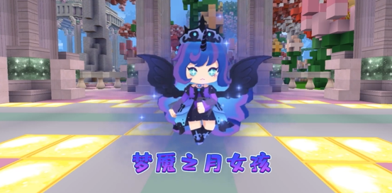 迷你世界上线小马宝莉正版授权人物皮肤梦魇之月女孩,这款皮肤以蓝紫色为主题色进行设计,人物角色拥有着淡紫色的行走特效。这也是迷你世界继苹果嘉儿和珍奇之外,推出的又一款小马宝莉联动皮肤。