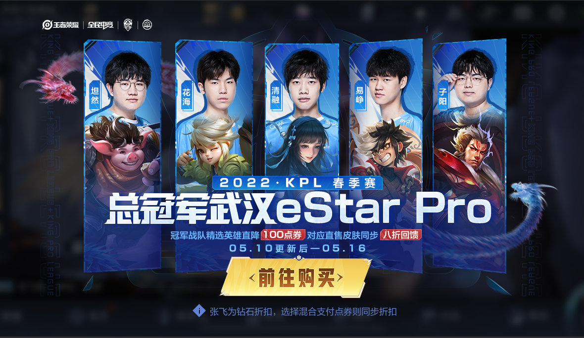 王者荣耀KPL冠军阵容在游戏内开启英雄与皮肤折扣,西施,蒙伢,张飞,猪八戒和阿古朵等英雄及其部分皮肤在游戏商城中可以享受折扣价格,活动时间从5月10日持续到5月16日。