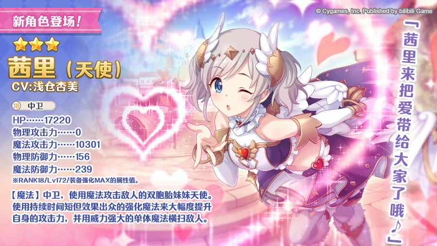公主连结上线全新游戏角色茜里新角色,为魔法中卫,她可以使用魔法攻击敌人,虽然使用时间持续比较短,但效果出众,还可以使用强化魔法大幅度提升自身的攻击力,也可以使用威力强大的单体魔法对敌人进行攻击。
