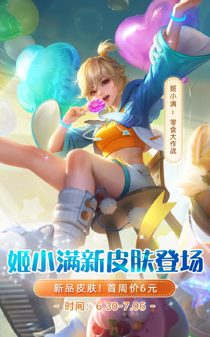 小伙伴们,姬小满零食大作战你拥有了吗?这款新皮肤限时首周价仅需6元,也可以用48个皮肤碎片兑换哦!小伙伴们你是通过什么方法获得这款皮肤的呢?