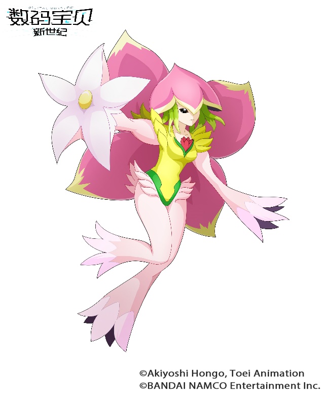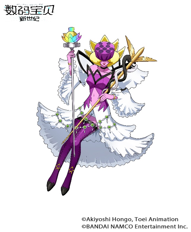 莲花兽传说在天界绽放的花朵——莲花模样的妖精型数码宝贝。性格如文静优雅的大小姐一般,拥有令人忘记尘世间苦难并给予幸福美梦的能力。但对于拒绝自己好意者,会挥下壮烈的铁锤。左手所持的掌管治愈和毁灭的“双蛇之杖”可以释放的白色灵气“巨蛇治愈”和黑色灵气“巨蛇毁灭”。奥义技是右手所持的彩虹色花杖散发出的七色灵气“七重幻想曲”将对方引诱到幸福的幻想世界,使其丧失斗志。