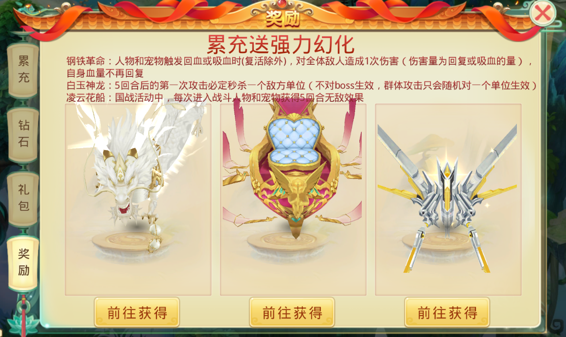 五、在活动期间内,同时还有累充奖励活动,欢乐币充值活动和礼包卷抽奖,礼包中有各种珍稀道具等你来拿,具体活动内容仙友们可以在游戏中查看,以游戏中显示的内容为准哦