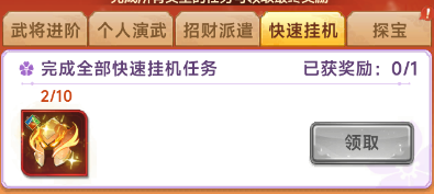 每完成一次挂机任务,右上角的已获奖励会+1,完成全部快速挂机任务的进度也会+1