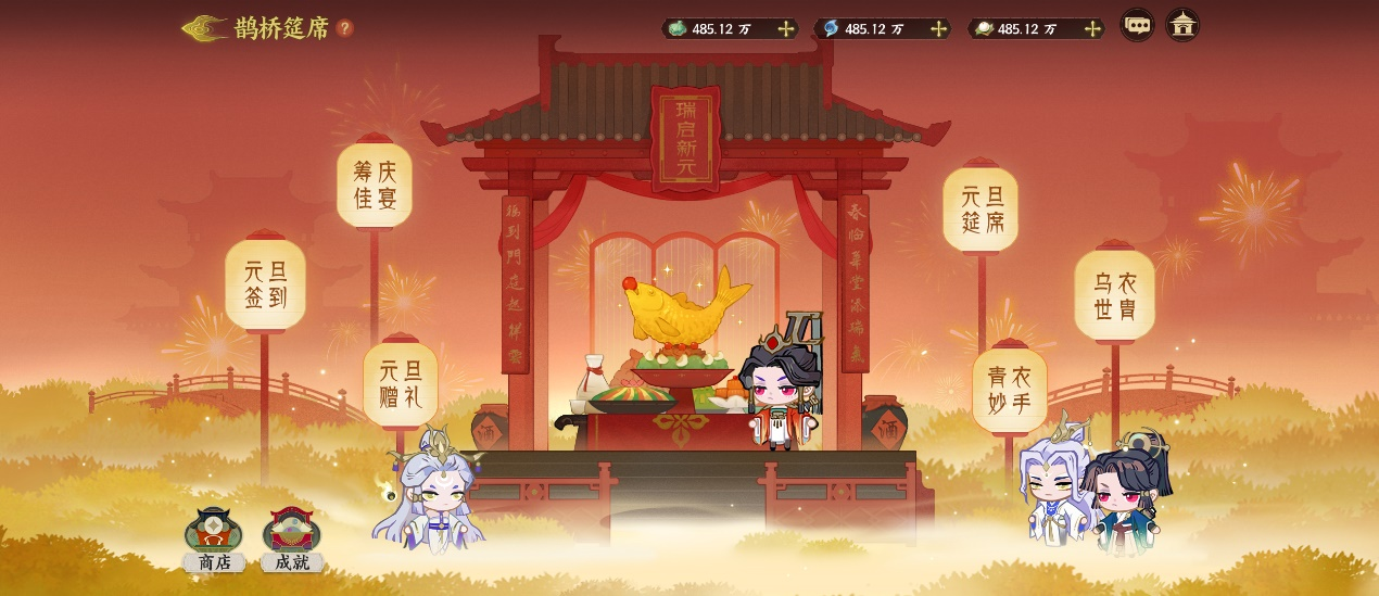 暖心玩法「元旦筵席」也将限时回归,玩家挑战或扫荡秘境副本、坠天墟即可收集美食材料。集齐材料后,可设置邀请跨服玩家共赴家宴,席间参与共舞、吹气球,实时聊天、燃放烟花等趣味互动提升宴会气氛值,解锁超额奖励。活动期间,副本挑战还将掉落「春花」道具,可前往专属商店兑换超值好礼,社交与福利两不误。