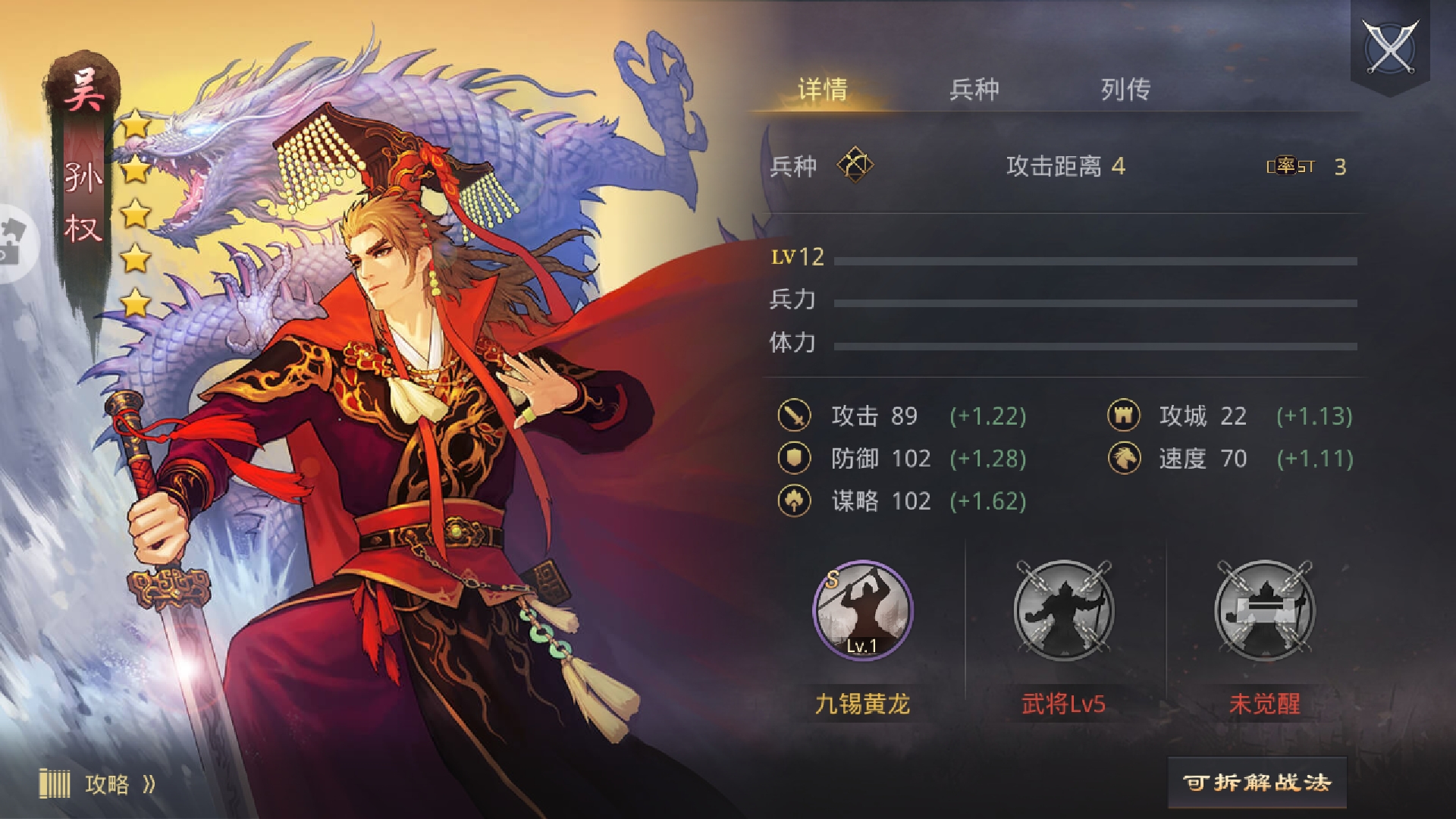 作为唯一一个六星武将,孙权一直在率土之滨中有着很高的地位,与刘备的健卒垒石体系相比,孙权则有着始计浑水体系。首先我们要先知道孙权的主动战法效果,移出友军的有害效果并免疫接下来两次伤害,可以说,孙权的主战法唯一的缺点就是可惜他是主动战法而且发动率有些低,但是如果孙权可以在始计的加持下上一个缺点可以无限缩小。