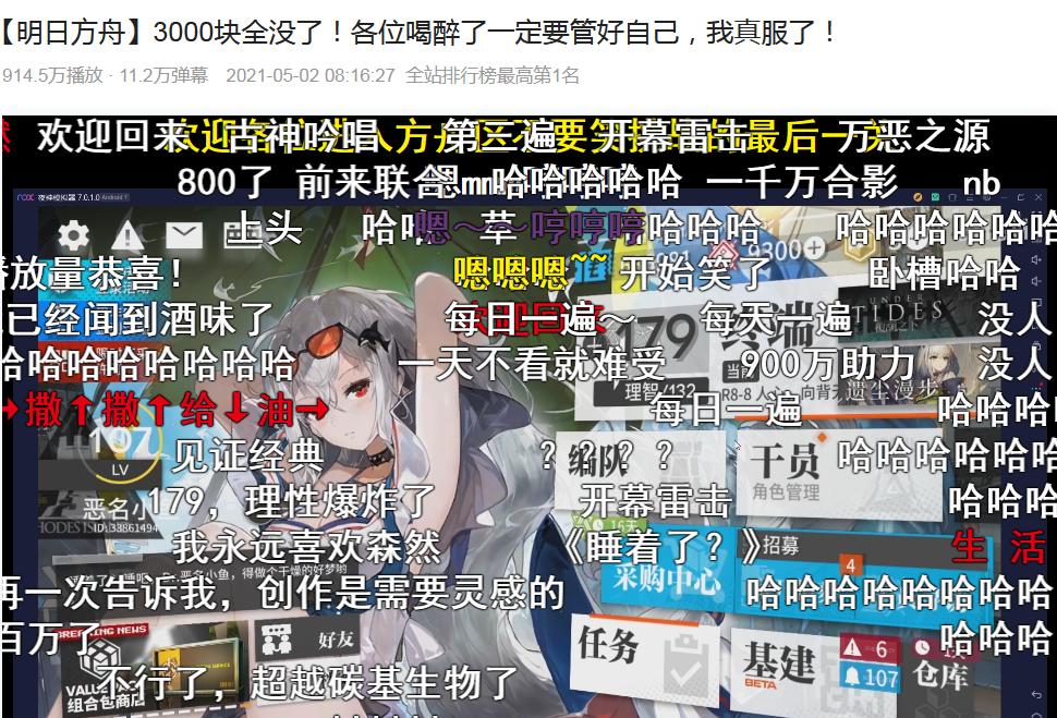 就在明日方舟“醉酒抽卡”为大家带来许多新梗的时候,这位UP真情流露的视频也在近期成为了B站的热门内容。在“新梗制造机”上线近一周的时间里,视频已经连续登顶全区排行榜首,让其有了突破“千万播放”的可能。