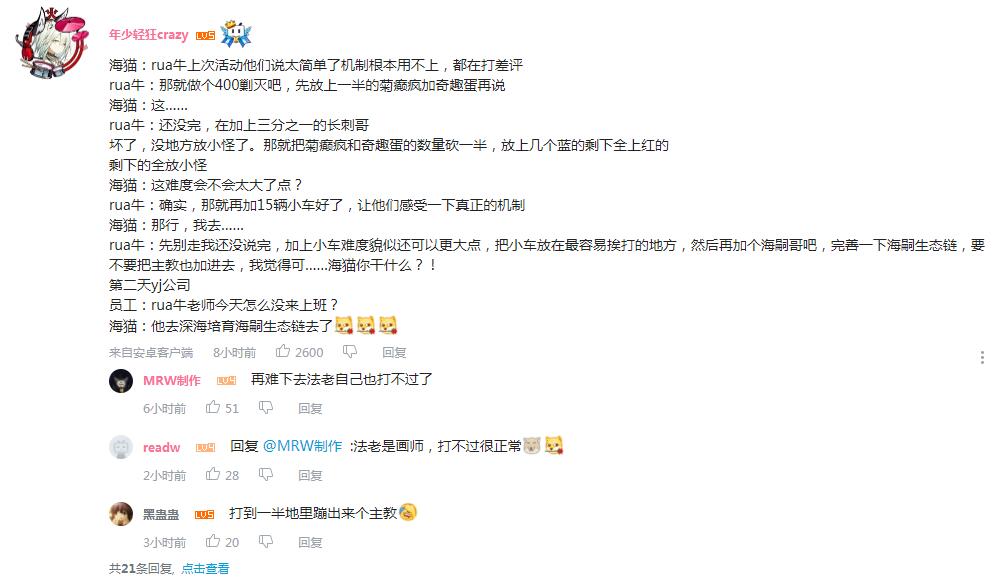 当然,也有一些玩家表示,只是现在看上去感觉很难,实际操作后肯定会有解决办法的,到时候整活儿玩家应该不在少数。虽然这话是没有错,策划肯定不会拿出无法通过的关卡来针对玩家,但是在不抄作业的情况,会有多少玩家能自己研究出正确的打法呢?