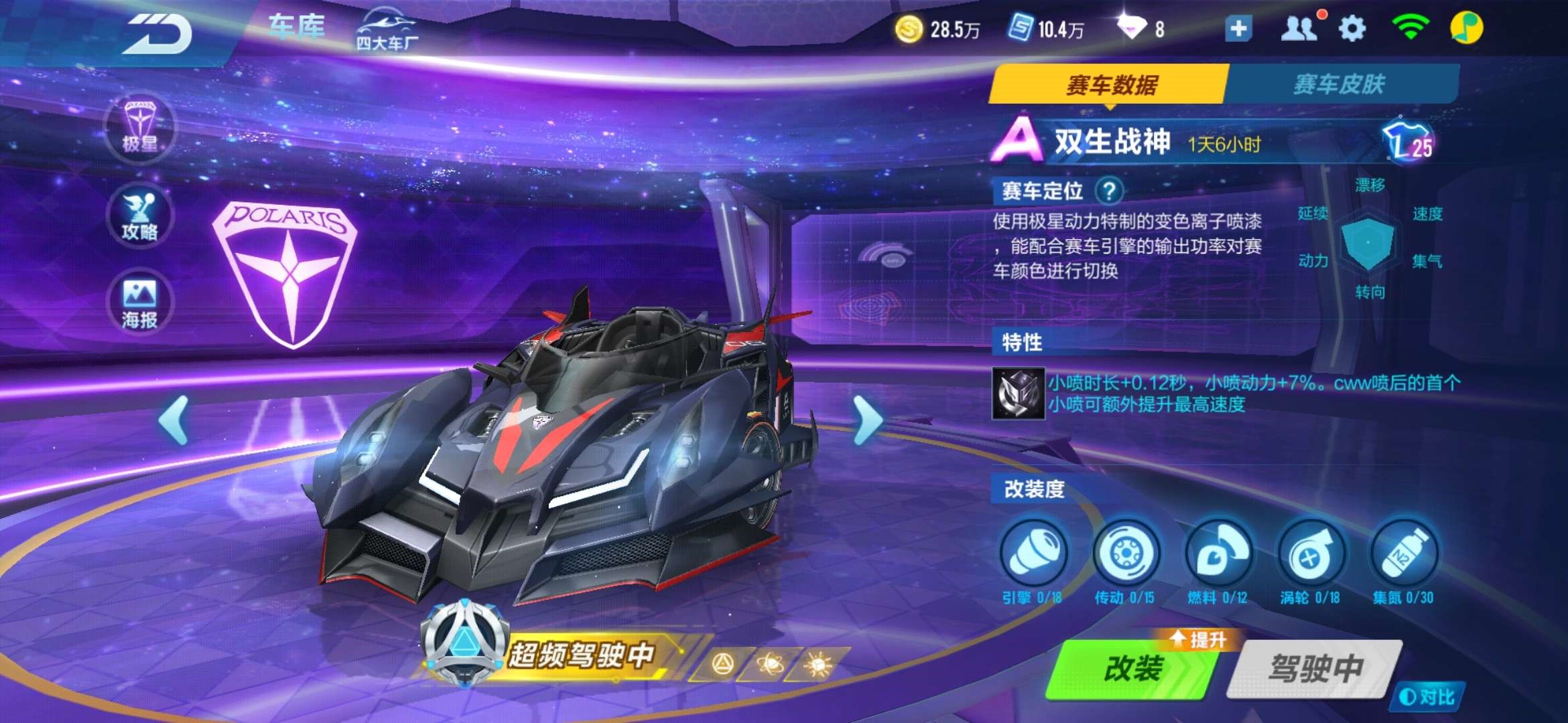 30秒的前期特性使得它注定与长跑无缘,虽然是一辆点券车,可是30秒稳定的速度加成使得它前期也能和氪金赛车一战,正所谓短跑车前段靠特性,后段靠技术,在特性结束后,用这辆车能跑出什么样的成绩就完全看自己的技术了。