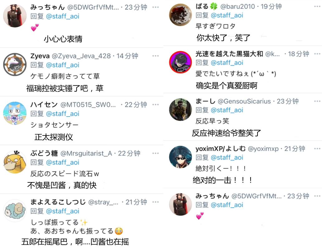 而在粉丝和玩家发现悠木碧这个操作之后,纷纷为她的“手速”感到惊讶和好笑。从这些日服原神玩家的讨论中,他们认为悠木碧秒速转发五郎直接证明了她是个喜欢正太角色的原神玩家,并且还有福瑞控的可能性。还有玩家表示自己被悠木碧的手速所惊讶,并为这样状态的悠木碧感到十分好笑。