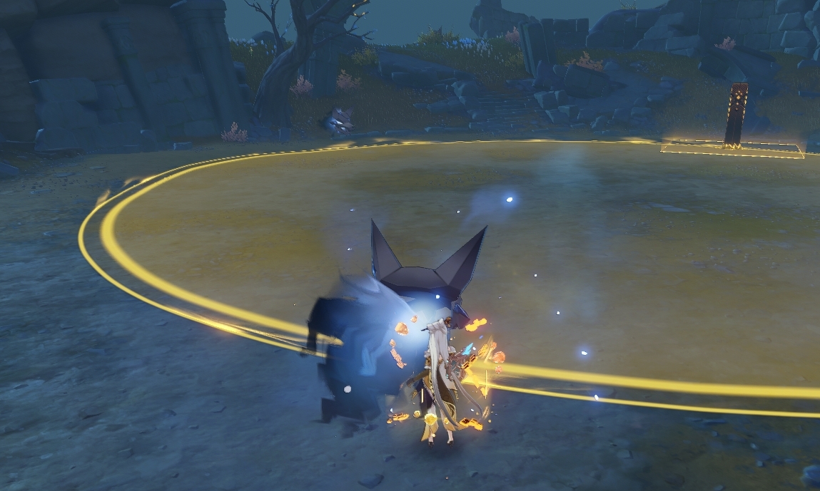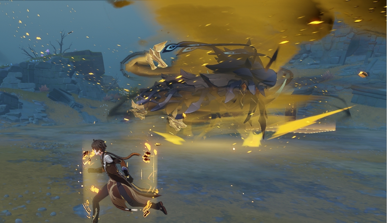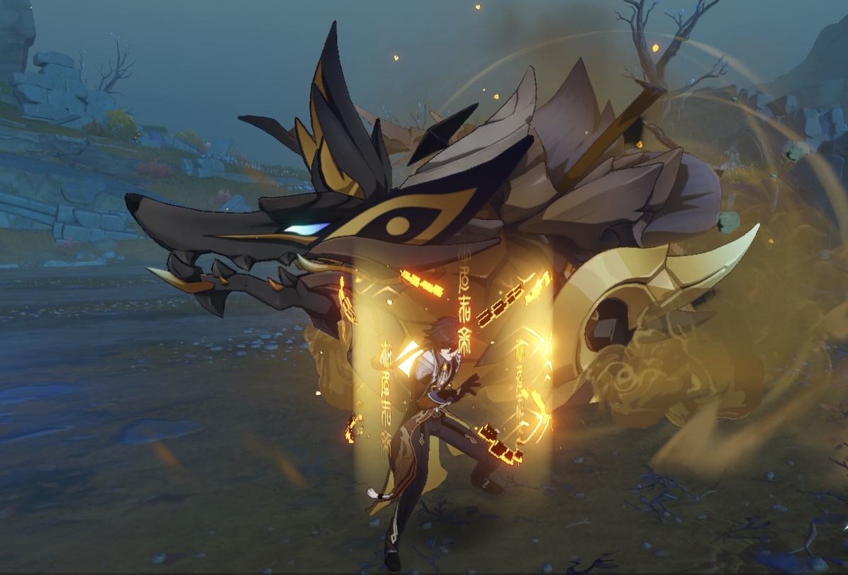 破盾是打败王兽的要点,但破盾并不需要远程攻击王兽本体,只需用岩元素击打其生成的“狗头”即可,而且近战攻击完全可以应付。值得注意的是,破盾过程中王兽会降下大范围AOE攻击,但只要躲在“狗头”之后就可安然无恙。击破三只“狗头”,王兽破盾并再度落地,且瘫软的时间更长,相信此刻玩家定能一举得胜。