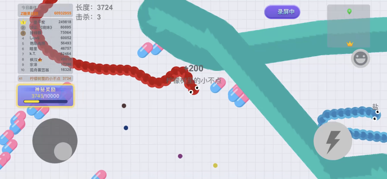 跟着体型较大的蛇,当对方失误或者是被更大的蛇击杀之后,就可以迅速吃掉对方迅速成长,虽然这个方法有一点取巧性,但是也有相当大的危险性。因为大蛇很有可能会随时回头吃掉你,甚至包围你,慢慢的再把你吃掉,所以说,稍有不对马上跑。