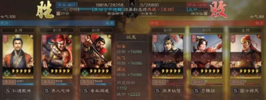 刘备主要用来维护队伍的血线,主要不能让张飞暴毙。张飞作为队伍的核心输出,每场大概是一万五左右。魏延用的战法比较强力,也是容易得到的,要是威谋靡亢触发的次数多,伤害一般是一万左右。整体来说,三个武将的效果比较均衡,搭配起来就很合适,获取难度都不高。