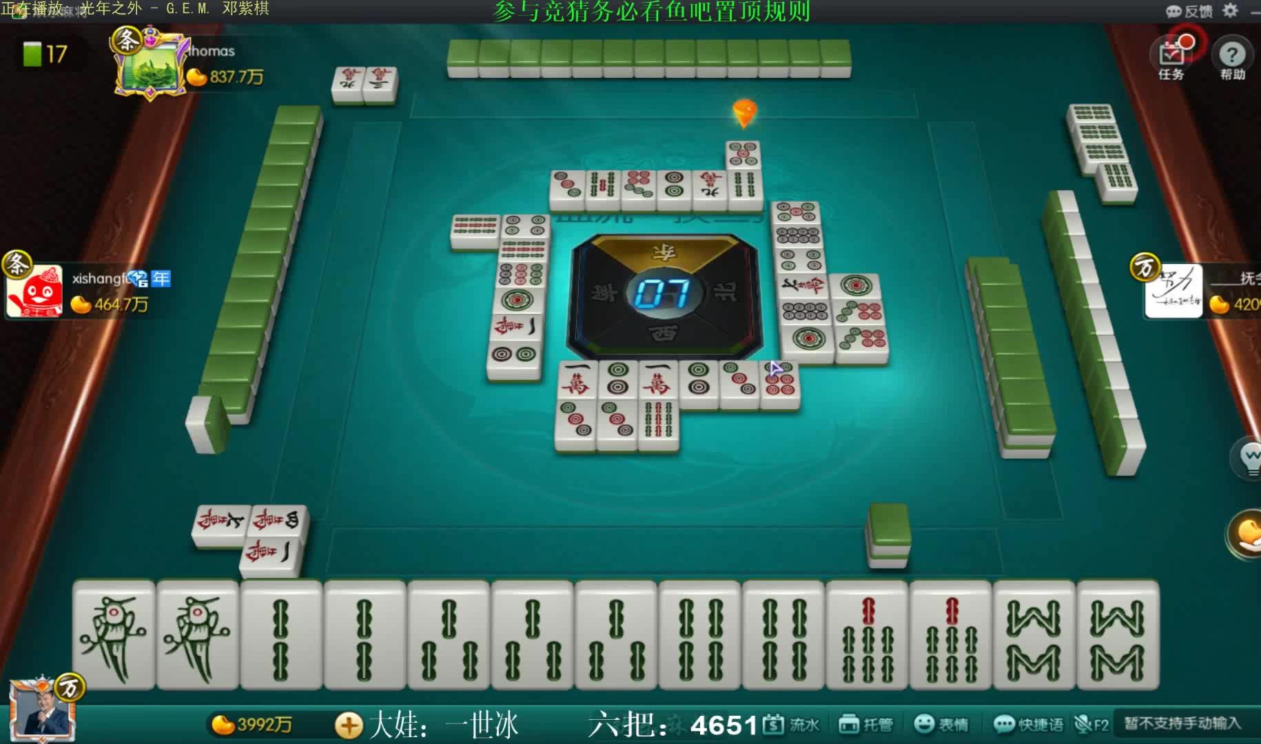 攻略三:如果拿到的牌一般或者遇到牌型不全的情况可以“敌不动我不动”,就是说当情况不明时可以先打一些熟牌,这样对手也不好吃碰牌。如果是组排比较多的情况,那就要对对手手中的牌进行一个猜测,在此之上拆牌。