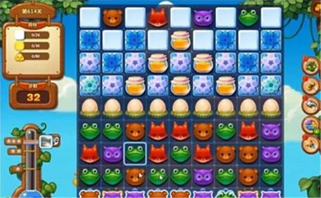 首先要提到的就是小鸡关卡,小鸡关卡的特效会比其他关卡更多一些,大家不要心急,游戏开始的时候看一下所需的通关步数,不要浪费每一步。其次,大家需要用组合的小鸡去砸蛋,这样消灭的小动物就会更多,接下来的游戏会更加顺利。