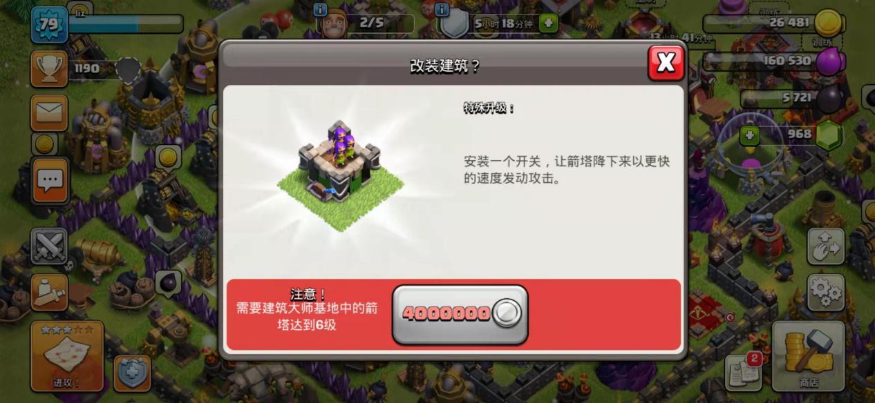 然而,玩家需要知道的是,这样一个“逆天”的箭塔,只能被改装一个,且必须等到建筑大师基地的箭塔满了6级才能进行改装。